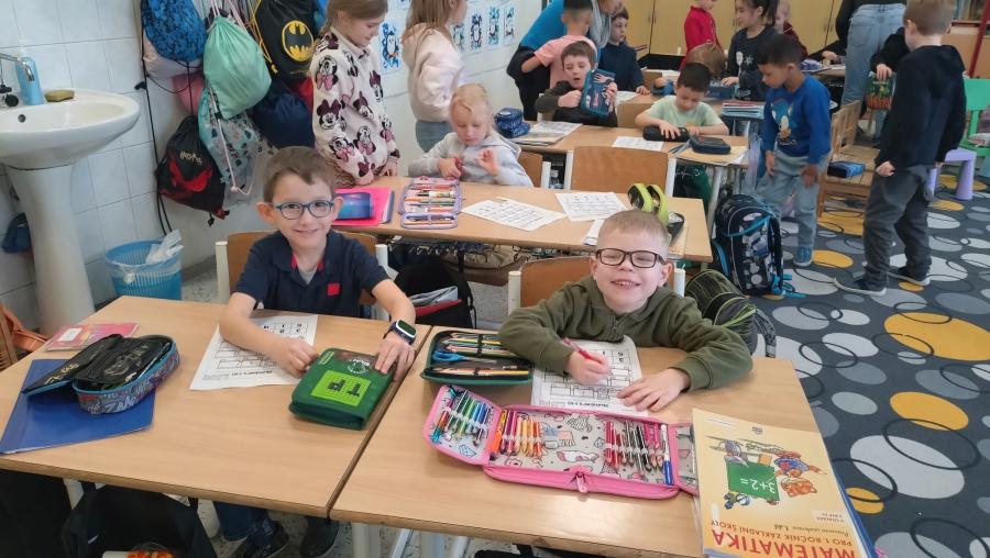 Děti pozorovaly práci starších kamarádů s velkým zaujetím. Viděly, jak se hlásí, odpovídají na otázky paní učitelky a pracují s učebnicí. Některé úkoly jim připadaly překvapivě známé - vždyť i v přípravné třídě už počítáme, porovnáváme množství a řešíme jednoduché logické úlohy.
